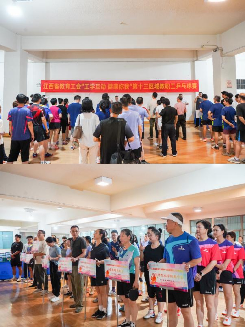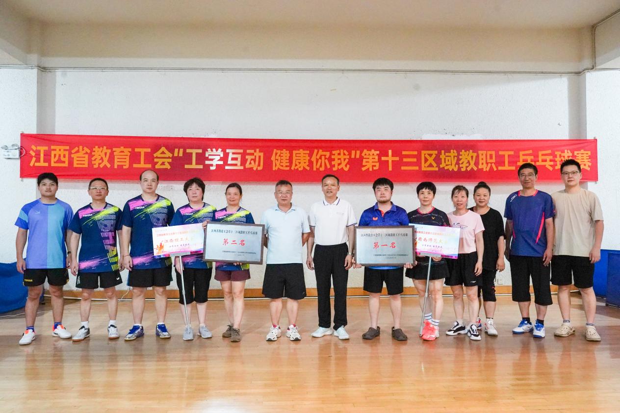 本网讯  6月15日,乐投(中国)省教育工会“工学互动 健康你我”第十三区域教职工乒乓球赛在乐投网页版红旗校区体育馆圆满落幕。本次比赛由乐投(中国)省教育工会主办、乐投网页版工会承办,吸引了来自区域内乐投网页版、赣南师范大学、赣南师范大学附属中学、赣南医科大学及其第一、第二、第三附属医院、赣州市教育工会(下属赣州中学、赣州市第三中学)等多家单位的教职工踊跃参与。